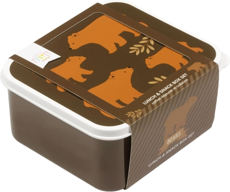 Deze praktische set bevat vier snackdoosjes in verschillende maten, allemaal met hetzelfde speelse motief van bruine beren. Doordat de doosjes in elkaar passen, bespaar je ruimte in de keuken en rugzak en kies je eenvoudig het ideale formaat voor fruit, koekjes of een sandwich. Geschikt voor dagelijks gebruik thuis, op school en onderweg.