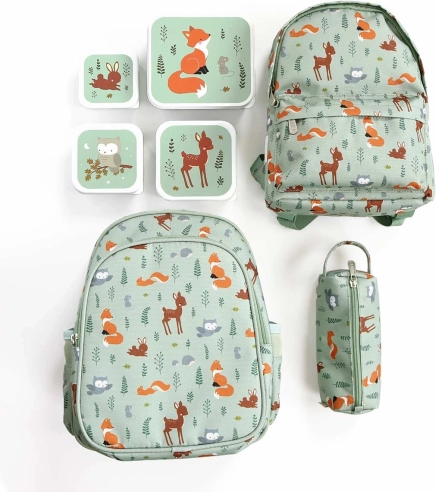 Deze praktische set lunchboxen van A Little Lovely Company brengt een speels design met bosvriendjes in de populaire groene variant. De vier formaten zijn perfect voor lunch, tussendoortjes, fruit en kleine spulletjes. De bakjes kun je eenvoudig in elkaar opbergen, zodat ze in de kast minimaal ruimte innemen.