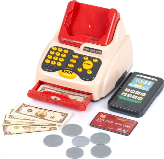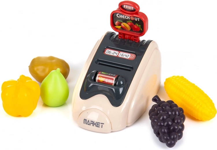 De speelset voor kinderen stimuleert de verbeelding, helpt kinderen verschillende vaardigheden onder de knie te krijgen en verbetert hun prestaties in rollenspelsituaties. Tijdens het spelen leren kinderen specifieke vaardigheden over verschillende beroepen, producenten en activiteiten. Eigenschappen: - bevat 24 stuks accessoires: kassalade, munten, bankbiljetten, betaalkaart, mobiel, etenswaren en meer, - interactieve speelgoedset met geluiden en lichtjes, - voor werking zijn batterijen nodig (niet inbegrepen): 2x AAA 1,5 V voor de terminal + 2x AA 1,5 V voor de scanner + 2x AA 1,5 V voor de kassa. Dit speelgoed is vervaardigd in overeenstemming met de eisen van Europese richtlijnen en normen met betrekking tot de veiligheid van speelgoed.
