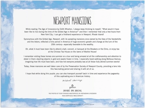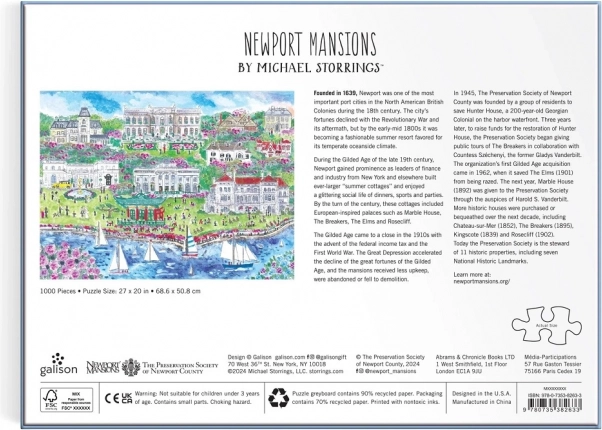 “Newportse herenhuizen” brengt de schoonheid en elegantie van architectonische monumenten naar uw woonkamer. Deze puzzel van Michael Storrings is geïnspireerd op de beroemde landhuizen in Rhode Island en biedt een unieke kijk op historische en culturele betekenis. De hoge kwaliteit en precies uitgesneden stukjes garanderen een onvergetelijke legervaring.