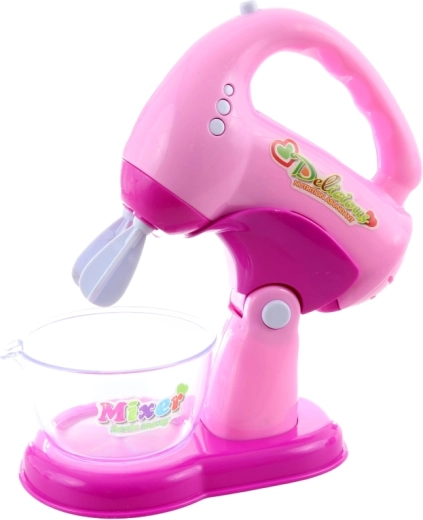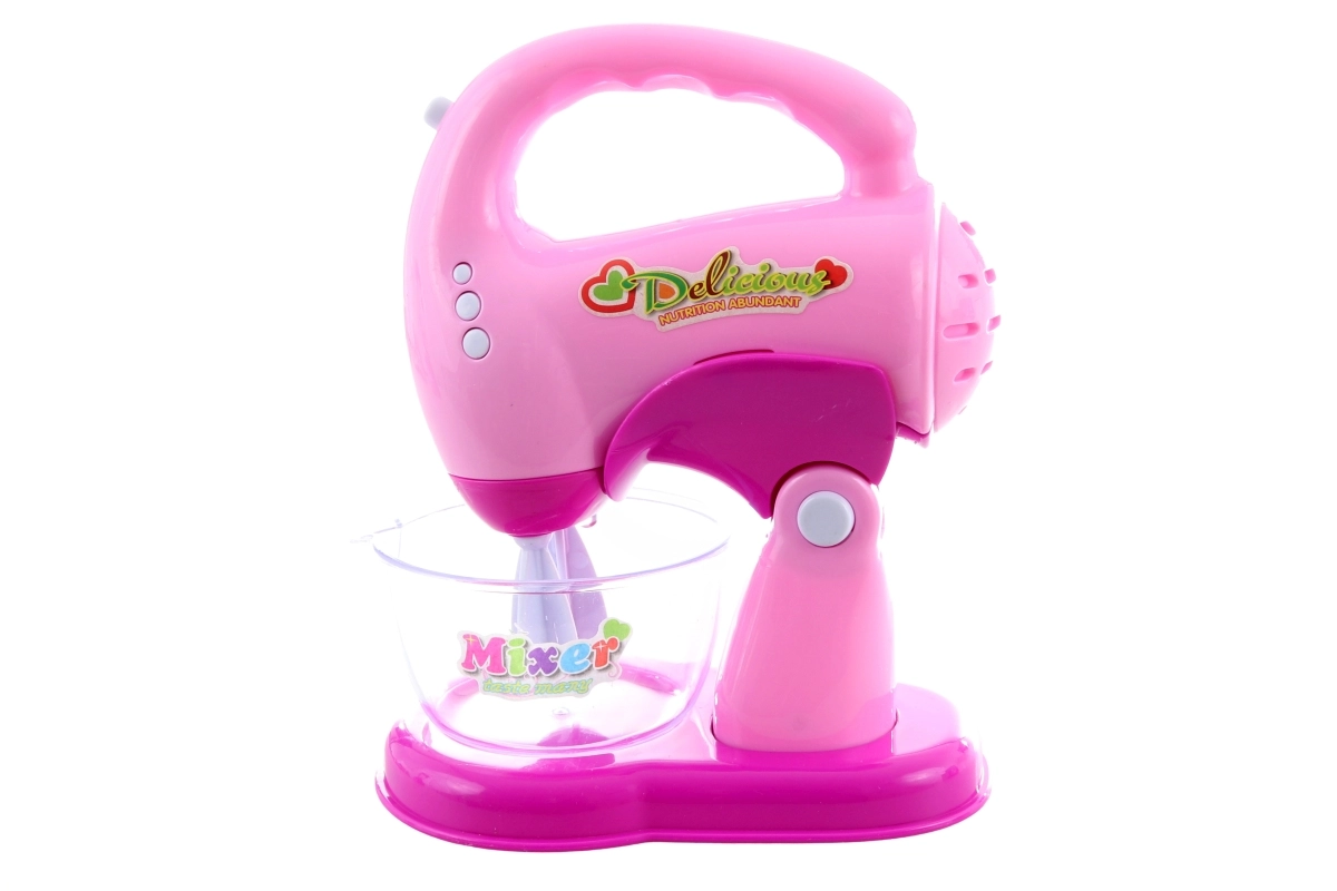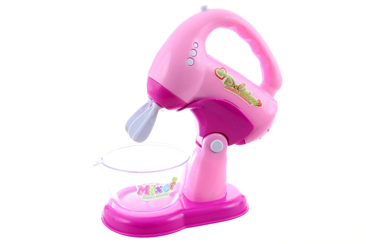 Handmixer met garde en kom draait, licht op en maakt geluid. Kinderen kunnen “kloppen” van crèmes en deeg alsof het in een echte keuken is.