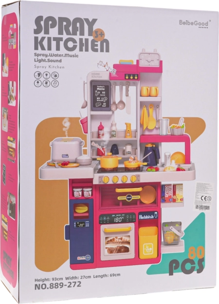 Ontdek het plezier van een kinderkeuken met maar liefst 80 accessoires, met lichteffecten en geluiden, realistische stoom uit de pan en stromend water uit de kraan. Ideaal voor kinderen vanaf 3 jaar, stimuleert creativiteit, fijne motoriek en rollenspel in een veilige omgeving.