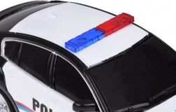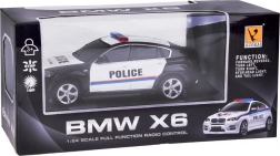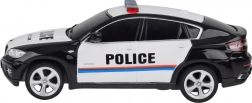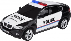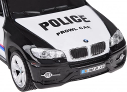 Dit model bootst de echte politieauto BMW X6 nauwkeurig na met authentieke details, inclusief politie-insignes en een lichtbalk op het dak.