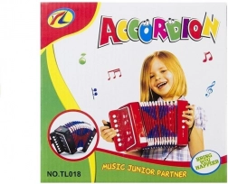 De muziekaccordeon is een fantastische speelgoed voor kinderen die van muziek en plezier houden. Het instrument ziet eruit als een echt exemplaar. Het ontwikkelt perfect de motoriek en het gehoor van het kind en bereidt het kind voor op het bespelen van een echt instrument. Het principe van de accordeon is hetzelfde als bij een echt instrument: om geluid te produceren moet de balg uit- en ingedrukt worden; de accordeon heeft bas- en melodietoetsen en een handriem.