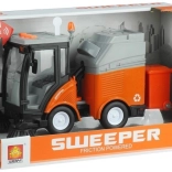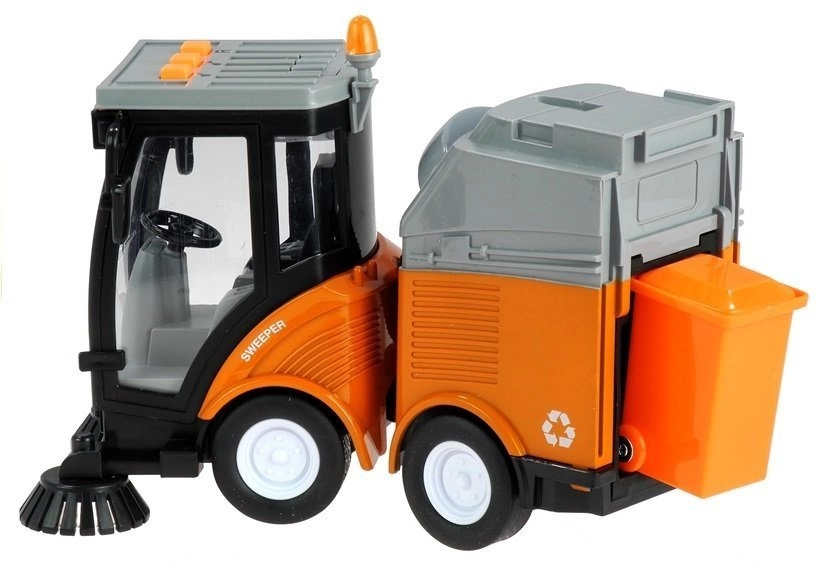 Aan de voorkant van het voertuig bevinden zich twee roterende borstels die vuil van de weg vegen.De transparante cabine is uitgerust met een stuur, een stoel en twee pedalen. Het voertuig ziet eruit als echt en behoudt alle hoofdcomponenten. Het bevat spiegels, borstels, een daklamp en veren die de cabine met het achterste deel van het voertuig verbinden. De wagen staat op draaiende rubberen wielen, waardoor hij soepel over verschillende oppervlakken rijdt.
