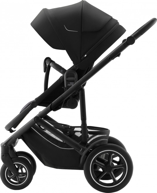De set in de kleur Space Black dekt alle behoeften vanaf de geboorte tot de kleuterleeftijd. De SMILE 5Z kinderwagen heeft geveerde, lekbestendige wielen, draaibare sportzit met rijrichting mee of tegen, extra lange kap met UPF 50+ en 360° reflecterende elementen voor veilige wandelingen in de stad en in de natuur.