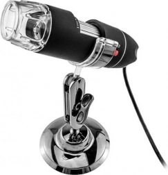 Deze digitale microscoop met USB-aansluiting maakt het mogelijk om vergrote objecten direct op uw monitor weer te geven. Hij is uitgerust met 8 heldere LED’s met helderheidsregeling op de kabel, wat zorgt voor een uitstekende weergave van objecten. De vergroting loopt van x50 tot x500 en is eenvoudig instelbaar met het wiel op de microscoop. De microscoop maakt foto’s met een resolutie van 6324x4742 ppi (na interpolatie) en levert dankzij de hoge sensorkwaliteit een scherp en contrastrijk beeld.