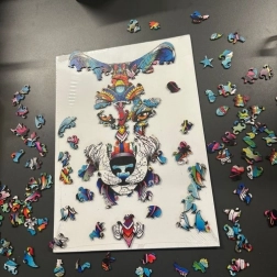 De houten puzzel met een kleurrijke wolvenkop valt op door de originele onregelmatige vorm en gedetailleerde graphics. De stukjes zijn met laser hoge-precisie gesneden uit stabiel houten multiplex, waardoor ze perfect in elkaar passen en langdurig gebruik doorstaan. Puzzelen bevordert logisch denken, geduld en concentratie en helpt tegelijk stress te verminderen.