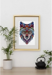 Na het leggen krijg je een bontgekleurde wolvenkop met rijke patronen, die een opvallend element in je interieur wordt.