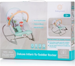 Het Chipolino Melody schommelstoeltje biedt een comfortabele en veilige plek om te rusten en te spelen. Zachte bekleding, een stabiele constructie en het eenvoudig wisselen tussen twee rugleuningstanden zorgen voor comfort in elke situatie. Geïntegreerde vibraties en melodieën helpen snel te kalmeren en in slaap te sussen.