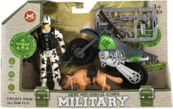 - Complete set voor direct spelen: motor, soldaat, hond en accessoires