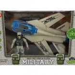Deze aantrekkelijke militaire set biedt kinderen urenlang spannende pret. De realistische straaljager met openende cockpitkap en afneembare accessoires, samen met de actiefiguur van een soldaat in volledige uitrusting, ondersteunt rollenspel en de ontwikkeling van de verbeelding.