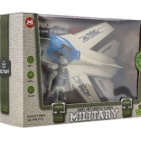 De set in een doos van 27 × 18 × 12 cm bevat een straaljager, een soldaat en accessoires – het perfecte cadeau voor jonge liefhebbers van legerverhalen.