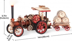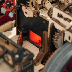 De RoboTime 3D mechanische puzzel van een stoommachine zal alle liefhebbers van techniek, modelbouw en slim ontworpen houten bouwpakketten bekoren. Na montage krijgt u een functioneel model met een handmatige versnellingsbak met drie versnellingen, siliconen wielen en een aan te koppelen geveerde aanhanger die 120° kan draaien. LED-verlichting in de vuurhaard en schoorsteen zorgt voor een realistische indruk van verbranding en rook, waardoor het model niet alleen lijkt op, maar ook aanvoelt als een echte stoommachine.