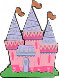 Een kleurrijke schuimen uitsnede van een kasteel met drie torentjes brengt een magische sfeer in de kamer.