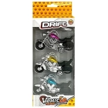 Deze set van drie realistische mini-motoren biedt veel speelplezier en is een mooie uitbreiding van de verzameling. Dankzij de combinatie van metalen en kunststof onderdelen zijn de modellen stevig en duurzaam, met fraaie details – van het stuur en zadel tot aan de ‘verchroomde’ accenten. Door het compacte formaat liggen ze perfect in kinderhanden.