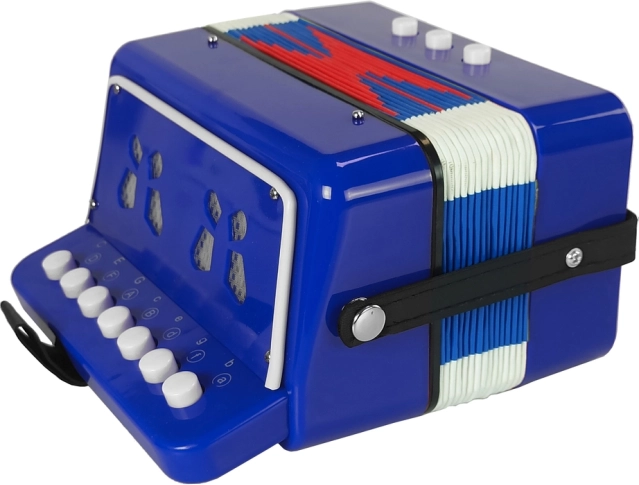 De muziek-accordeon is een fantastische speelgoed voor kinderen die van muziek en plezier houden. Het instrument ziet eruit als een echt exemplaar. Het ontwikkelt perfect de motoriek en het gehoor van het kind en bereidt het kind voor op het bespelen van een echt instrument. Het principe van de accordeon is hetzelfde als bij een echt instrument: om geluid te produceren moet de balg worden uit- en ingeschoven. De accordeon heeft basknoppen, melodieknoppen en een handgreep.