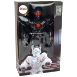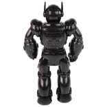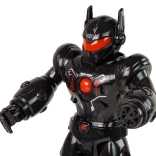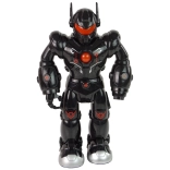 Interactieve zwarte robot voor kinderen met vooruit lopen, lichteffecten en schietgeluiden, die de verbeelding prikkelen en de coördinatievaardigheden ontwikkelen. Duurzame afwerking, moderne look en veilig ontwerp zorgen voor uren speelplezier.