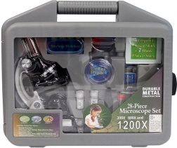.Uw kleine wetenschapper kan voortaan overal de natuur onderzoeken dankzij de draagbare koffer met alle benodigde uitrusting. Een geweldige manier om een kind kennis te laten maken met de wereld van wetenschap en natuur. Hij of zij kan ontdekken hoe een krantenfoto, een blad, een vinger of haar eruitziet onder vergroting. Voorzien van instelbare scherpstelling. Met de microscoop, bedoeld voor het observeren van alledaagse voorwerpen, worden de geheimen van de kleine wereld en de microbiologie onthuld.