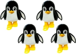 Vier pinguïnfiguurtjes met grote ogen geven het spel charme en overzicht – elke speler heeft zijn eigen held.