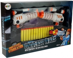 De complete set in een cadeauverpakking 'Universe Wars' bevat 2 pistolen en kogels en is een geweldig cadeau voor alle kleine ruimtereizigers.