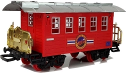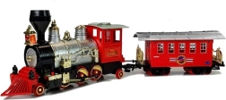 Deze speelgoedlocomotief brengt fijne herinneringen aan de kersttijd in huis. De trein is geliefd bij zowel jongere als oudere kinderen, evenals hun vaders. De locomotief valt op door zijn prachtige, gedetailleerde afwerking en is gemaakt van duurzaam plastic. De kleurcombinatie van intens rood met contrasterende zwarte, zilveren en gouden elementen is echt opvallend. Het achterste deel van de cabine heeft raampjes waar kinderen hun figuurtjes kunnen plaatsen. Op het speelgoed staat "Golden Line" en het design is geïnspireerd op echte treinen uit het verleden.