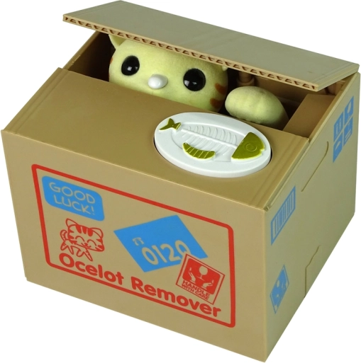 Met dit geweldige speelgoed leert je kind op een leuke manier geld sparen. Door op de knop te drukken wordt een mechanisme geactiveerd waarbij de kat het deksel van de spaarpot optilt en met haar pootje de munten naar binnen trekt.