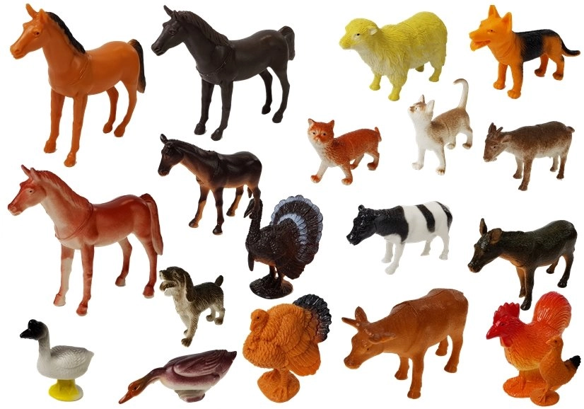 Uiterlijk en kleurstelling doen denken aan realistische tegenhangers. De hele set bevat ongeveer 20 figuren en een speelmat met het landschap van een mooie, grote boerderij. Zeker leuk voor natuurliefhebbers. Op de mat staan een prachtig landhuis en grote weiden voor de dieren. De set bevat o.a. koeien, paarden, schapen, kalkoenen, een hond, een kat, een haan, een kalkoenhaan en een gans.