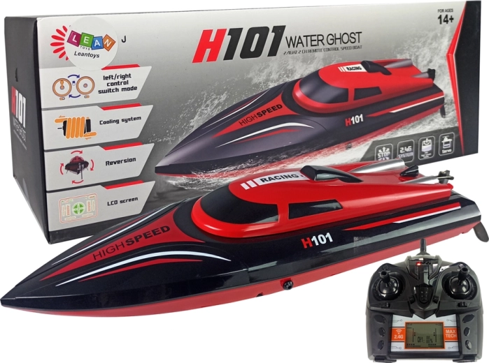 De snelle RC-boot H101 is ontworpen om uitzonderlijke snelheid en wendbaarheid op het water te garanderen. Dankzij de speciale constructie biedt hij bescherming tegen binnendringend water en is hij uitgerust met een LCD-paneel voor het volgen van parameters. Dit model gebruikt een 2,4 GHz-frequentie voor stabiele communicatie zonder storingen.