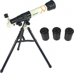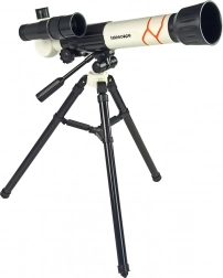 Ontdek de wereld van de astronomie; een ideaal cadeau voor kleine wetenschappers dat hen aanmoedigt te ontdekken wat er aan de hemel is. De telescoop werkt op basis van breking en scherpstelling. Terwijl het licht door het objectief gaat, wordt het verzameld en gebroken in de concave spiegel. Hierdoor kunnen we observeren met een verticale oculair.