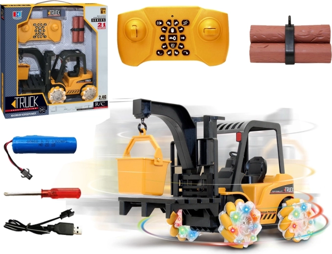 Ontdek realistisch speelplezier met de RC heftruck, voorzien van 360° rotatie, lichtgevende wielen en een volledig functionele palletheffing met 2,4 GHz afstandsbediening. De duurzame constructie, dynamische vooruit/achteruit- en zijwaartse beweging, automatische demo en geluidseffecten maken het de perfecte speelgoedset voor kleine magazijnmedewerkers en volwassen liefhebbers.