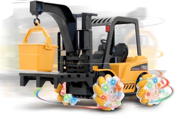 Bedien het heffen en laten zakken van de pallet met één knop, geniet van gekleurde LED’s in de wielen, muziek tijdens het rijden en een waarschuwingssignaal voor een nog realistischer spel. De geïntegreerde 3,7 V / 1200 mAh accu biedt een lange gebruiksduur en gemakkelijk opladen.