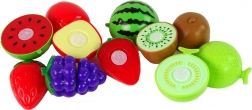 Plastic fruit zoals aardbei, kiwi, meloen en meer in prachtige kleuren - gemakkelijk te splitsen met behulp van een mesje.