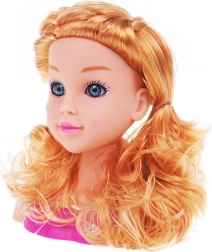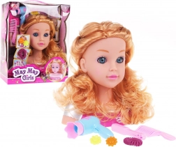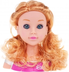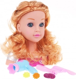 Lange golvende blonde haren en een realistische gezichtsuitdrukking bieden een authentieke kapperservaring en stimuleren kindercreativiteit.