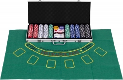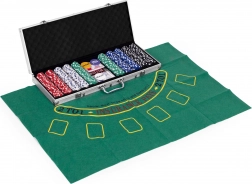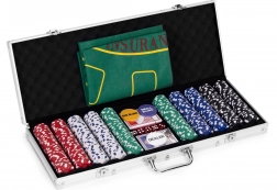 Bevat 500 fiches, 2 kaartspellen, dobbelstenen en een speelmat. Alles in een praktische afsluitbare koffer.