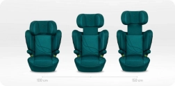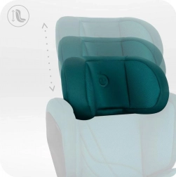 De diepe, zachte en in hoogte verstelbare hoofdsteun absorbeert samen met de zijbescherming effectief de impactenergie en beschermt het hoofd en de nek van het kind.
