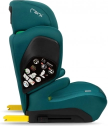 MoMi MEI is een betrouwbaar autostoeltje ontworpen voor veilig en comfortabel reizen van kinderen van 100 tot 150 cm. Dankzij het ISOFIX-systeem met zichtbare indicator van correcte installatie wordt het risico op foutieve bevestiging geminimaliseerd. Versterkte zijbescherming en een drielaagse, diepe hoofdsteun beschermen hoofd en nek bij een impact.