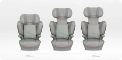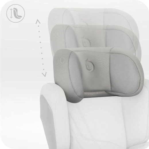 Diepe, zachte en in hoogte verstelbare hoofdsteun in 9 stappen beschermt hoofd en nek, absorbeert schokenergie en groeit mee met het kind.