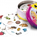 Dobble Disney prinsessen is een fascinerend spel dat spelers meeneemt naar de wereld van Disney-prinsessen. Het bevat 57 verschillende symbolen, 55 kaarten en op elke kaart staan 8 afbeeldingen. Het unieke aan elke ronde is dat twee willekeurige kaarten slechts één gemeenschappelijke afbeelding hebben.