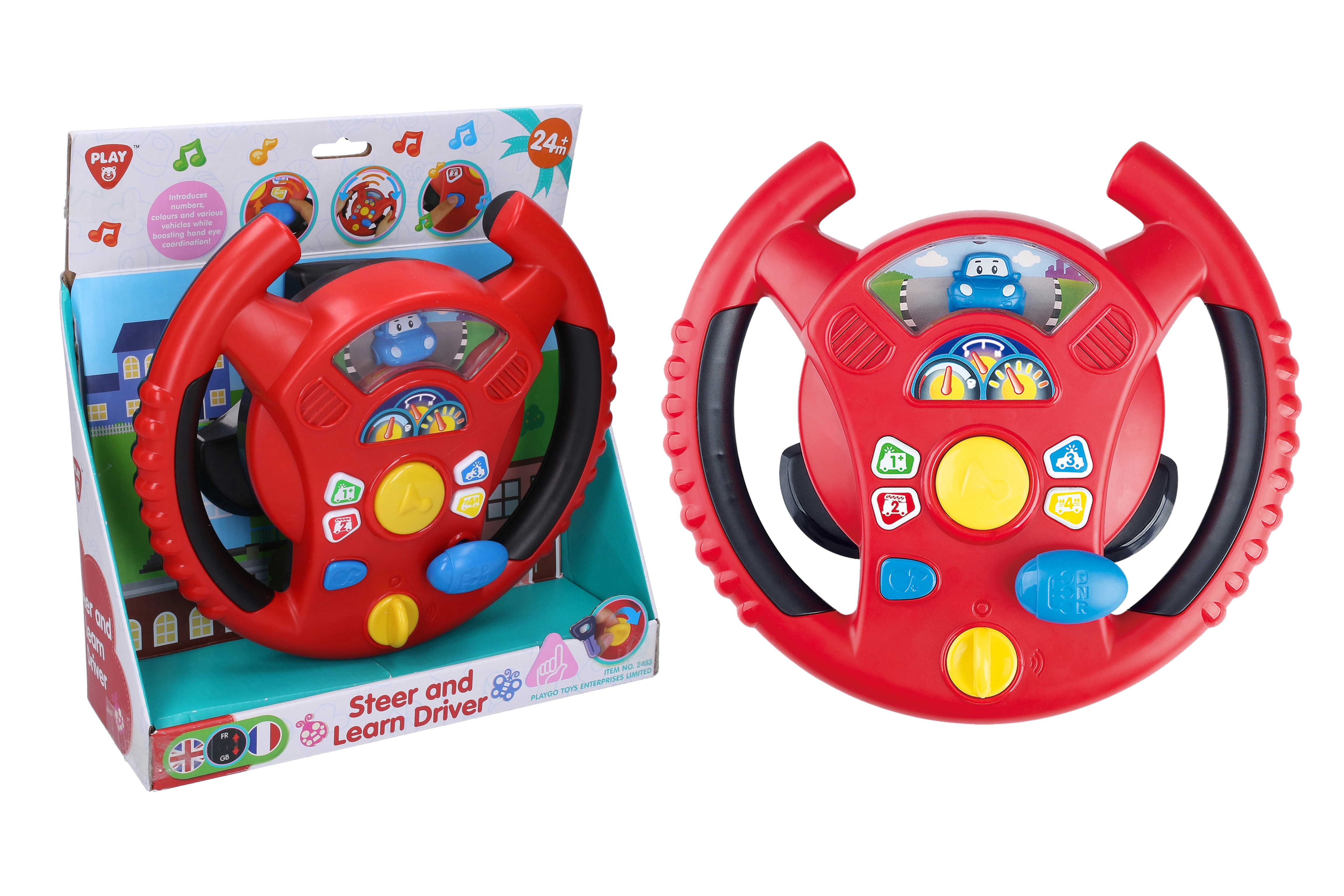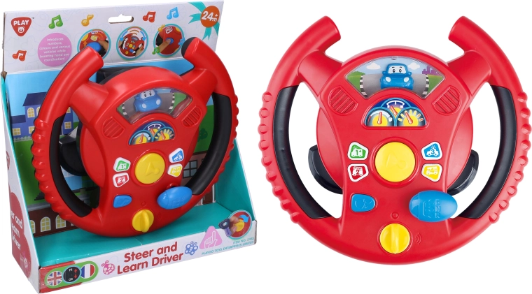Het interactieve stuur van Playgo brengt kinderen een leuke rij-ervaring in een mini-stad. Een draaiknop aan de onderzijde van het stuur dient om het in te schakelen, in het midden vind je de claxon, rechts een versnellingshendel voor rijgeluiden en op de stuurkrans kleine knopjes met tonen en melodieën. Kinderen genieten van realistische effecten die aan een echte auto doen denken en ontwikkelen ondertussen hun coördinatie en verbeeldingskracht.