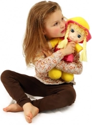 Een schattig stoffen popje met lange vlechtjes en een bloemenhoedje heeft een zacht lichaampje van fijn materiaal en is ideaal om mee te knuffelen, voor in het bedje en voor onderweg. Dankzij het formaat van 35 cm ligt ze ook bij de allerkleinsten goed in de hand en is geschikt vanaf 0 maanden.