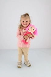 De lappenpop Mazlinka is ontworpen om kinderen een gevoel van veiligheid en vreugde te geven. De zachte textiele uitvoering en de schattige details met roze haartjes en jurkje stimuleren de fijne motoriek en de fantasie tijdens het dagelijkse spel.