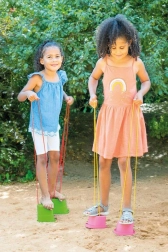 Het lichte ontwerp en de verpakking in een netje maken het eenvoudig om de stelten mee te nemen naar de speeltuin, het park of op vakantie – uitpakken en spelen maar.