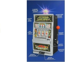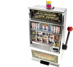 Houdt je kind van multifunctioneel speelgoed? Kies dan voor een speelautomaat die doet denken aan de eenarmige bandiet uit filmcasino’s, waarvan de functionaliteit spel combineert met een kleine spaarpot – een verrassende combinatie voor je kind. Deze automaat is een trouwe reproductie van het populairste spel in alle casino’s. Voor geweldig plezier heb je niet veel nodig – alleen wat kleingeld dat je kind in de automaat stopt.