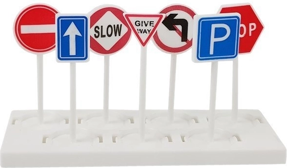 - Vliegtuig, 3× politieautootje, set verkeersborden