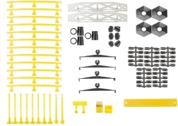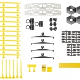 In de verpakking vind je alle onderdelen, inclusief bruggen, koppelingen en accessoires voor een stabiele en veelzijdige baanopbouw.