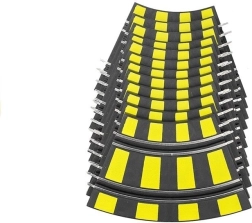 De montage is snel en eenvoudig, net als het weer opbergen. Voor een veilige rit zorgen zijbanden die voorkomen dat de autootjes uit de baan vliegen. Het duo ergonomische handregelaars maakt nauwkeurige snelheidsdosering mogelijk en helpt bij een ideale passage door loopings en bochten.