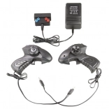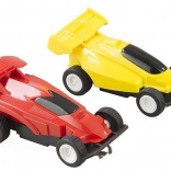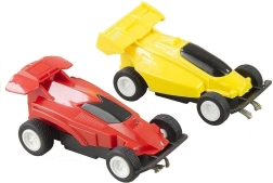 Met twee raceauto’s en ergonomische handregelaars neem je het eenvoudig tegen elkaar op en heb je in elk baanvak de snelheid onder controle.