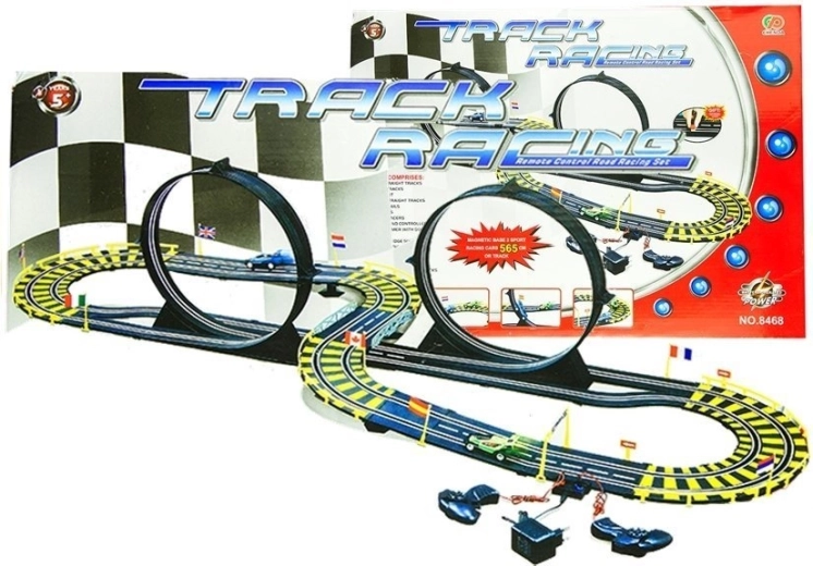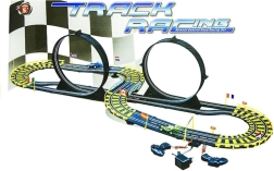 Deze hoogwaardige kunststof racebaan brengt een realistische racebeleving rechtstreeks in je woonkamer. Dankzij de netvoeding heb je geen batterijen nodig, zodat je ononderbroken kunt racen. Twee adrenaline-loopings, scherpe geel gemarkeerde bochten en witte strepen op de baan versterken het gevoel van echt racen.