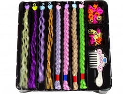 De set bevat ook acht kleurrijke vlechtstrengen, die nog meer variatie in stylingmogelijkheden bieden. Elke streng is voorzien van opvallende hangers die glans en elegantie toevoegen. Er is ook een kam inbegrepen, een onmisbaar hulpmiddel voor het creëren van stijlvolle kapsels.